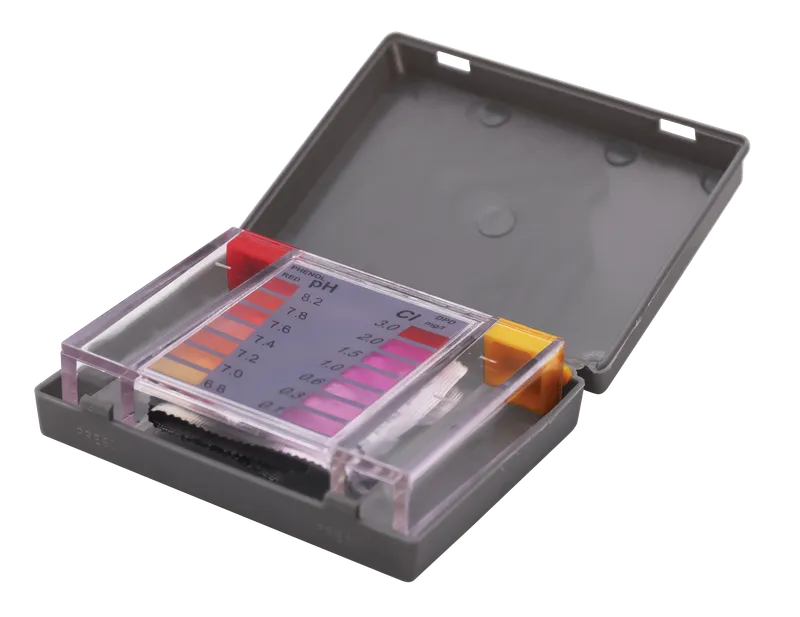 Testprodukt zur Überprüfung der Wasserqualität von Schwimmbädern.