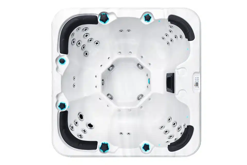 Passion Spa Rewind – Geräumiger Whirlpool für 7 Personen mit kraftvoller Massage. Der Passion Spas Rewind ist ideal für alle, die Entspannung in geselliger Runde genießen möchten. Mit Sitzplätzen für bis zu 7 Personen und einer offenen, geselligen Sitzanordnung ist dieser Whirlpool perfekt für Familien, Freundesgruppen oder alle, die gemeinsam ein umfassendes Wellness-Erlebnis suchen. Der Whirlpool ist mit 40 aktiven Hydrotherapie-Düsen ausgestattet, insgesamt 56 Düsen, darunter 16 Luftdüsen. Diese Kombination sorgt für eine angenehme Mischung aus entspannenden Bläschen und gezielter Massage. Die extrem leistungsstarke 5,0-PS-Massagepumpe, unterstützt von einem Gebläse und einer Umwälzpumpe, gewährleistet eine gleichbleibende Leistung und eine gleichmäßige Verteilung von Wasser und Luft. Das zuverlässige Joyonway-Steuerungs- und Heizsystem (3,0 kW) garantiert eine einfache Bedienung und eine stabile Wassertemperatur. Die robuste Polyethylen-Wanne mit 5 Jahren Garantie, kombiniert mit einer wartungsfreien Verkleidung und einer hochdichten Urethan-Isolierung, sorgt für einen widerstandsfähigen, energieeffizienten Whirlpool, der sich für intensive Nutzung eignet. Das integrierte Ozon-Oxidationssystem und die effiziente Filterung halten das Wasser sauber und klar bei minimalem Wartungsaufwand. Für zusätzlichen Komfort bietet der Spa Rewind 3 Kopfstützen, integrierte Aromatherapie, StarBrite LED-Unterwasserbeleuchtung, 11 LED-Leuchten und LED-beleuchtete Eckpaneele. Diese schaffen gemeinsam ein stimmungsvolles und luxuriöses Ambiente – Tag und Nacht. Wichtigste Vorteile: Kapazität für 7 Personen (großzügige, gesellige Sitzanordnung), 40 aktive Hydrotherapie-Düsen + 16 Luftdüsen (insgesamt 56 Düsen), leistungsstarke 5,0-PS-Pumpe, Gebläse und Umwälzpumpe, Joyonway Heiz- und Steuerungssystem (3,0 kW), robuste Polyethylen-Schale mit 5 Jahren Garantie, hochdichte Urethan-Isolierung für hervorragende Energieeffizienz, Aromatherapie und stimmungsvolle LED-Beleuchtung, Ozon-Oxidationssystem für sauberes und klares Wasser. Wartungsfreie, robuste Konstruktion. Ideal für Gruppen und intensive Nutzung. Mit Abmessungen von 204 x 204 x 90 cm und einem Wasserfassungsvermögen von 1300 Litern bietet der Passion Spa Rewind überraschend viel Platz in einem kompakten, quadratischen Design. Eine ausgezeichnete Wahl für alle, die einen erschwinglichen und dennoch luxuriösen Whirlpool für 7 Personen mit kraftvoller Massagefunktion, Langlebigkeit und einem klaren Fokus auf gemeinsame Entspannung suchen.
