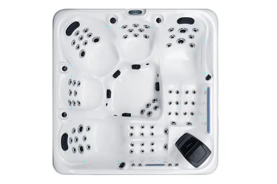 Devine Spas Luxus-Whirlpool für 5 Personen – Kraftvolle Hydrotherapie & Komfort. Erleben Sie ultimative Entspannung mit diesem luxuriösen Whirlpool von Devine Spas, der für alle entwickelt wurde, die Komfort, Leistung und Stil vereinen möchten. Mit Platz für 5 Personen – 3 Sitze und 2 bequeme Liegen – ist dieser Whirlpool perfekt für entspannende Momente allein oder in geselliger Runde mit Familie und Freunden. Ausgestattet mit 90 kraftvollen Hydrotherapie-Düsen und drei 3,0 PS starken Massagepumpen bietet dieser Whirlpool ein intensives und gleichmäßiges Massageerlebnis. Das zuverlässige Balboa-Steuerungs- und Heizsystem gewährleistet präzise Temperaturregelung und optimale Leistung, während das vollautomatische Filtersystem und das Ozon-Oxidationssystem für sauberes, klares Wasser bei minimalem Wartungsaufwand sorgen. Der Whirlpool verfügt über eine wartungsfreie Verkleidung und eine dreilagige Wärmedämmung, die für hervorragende Wärmespeicherung und Energieeffizienz sorgen. 16 LED-Leuchten, StarBrite-Unterwasserbeleuchtung und beleuchtete Wasserbögen tragen zur entspannenden Atmosphäre bei und schaffen ein luxuriöses Spa-Erlebnis. Für zusätzlichen Komfort ist der Whirlpool mit einem Bluetooth-Audiosystem mit integrierten Lautsprechern ausgestattet, sodass Sie beim Entspannen Ihre Lieblingsmusik genießen können. Hauptvorteile: Platz für 5 Personen (3 Sitze und 2 Liegen), 90 aktive Hydrotherapie-Düsen für eine intensive Massage, Balboa Heiz- und Steuerungssystem (3,0 kW), drei leistungsstarke 3,0-PS-Pumpen + Umwälzpumpe, vollautomatisches Filtersystem mit Ozonreinigung, luxuriöse LED-Beleuchtung und beleuchtete Wasserfontänen, Bluetooth-Audio mit integrierten Lautsprechern, hervorragende Isolierung und Energieeffizienz, wartungsfreie und langlebige Konstruktion. Mit seinen großzügigen Abmessungen von 220 x 220 x 82 cm und einem Fassungsvermögen von 1005 Litern ist dieser Whirlpool von Devine Spas die perfekte Ergänzung für jeden Garten oder Wellnessbereich. Die ideale Wahl für alle, die Luxus, Leistung und Zuverlässigkeit in einer Komplettlösung für Ihr Spa suchen.